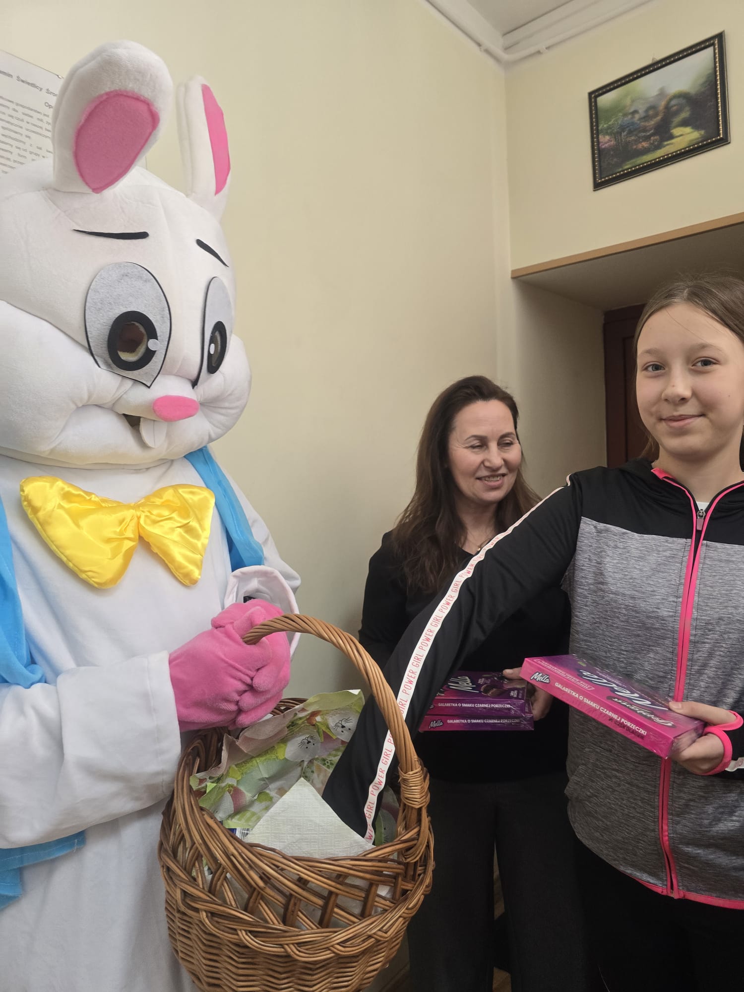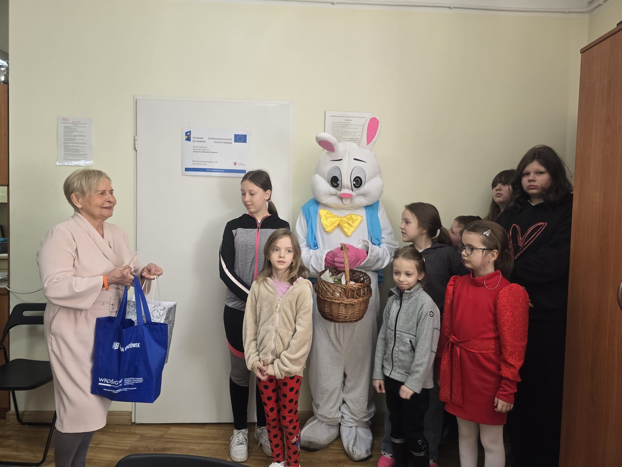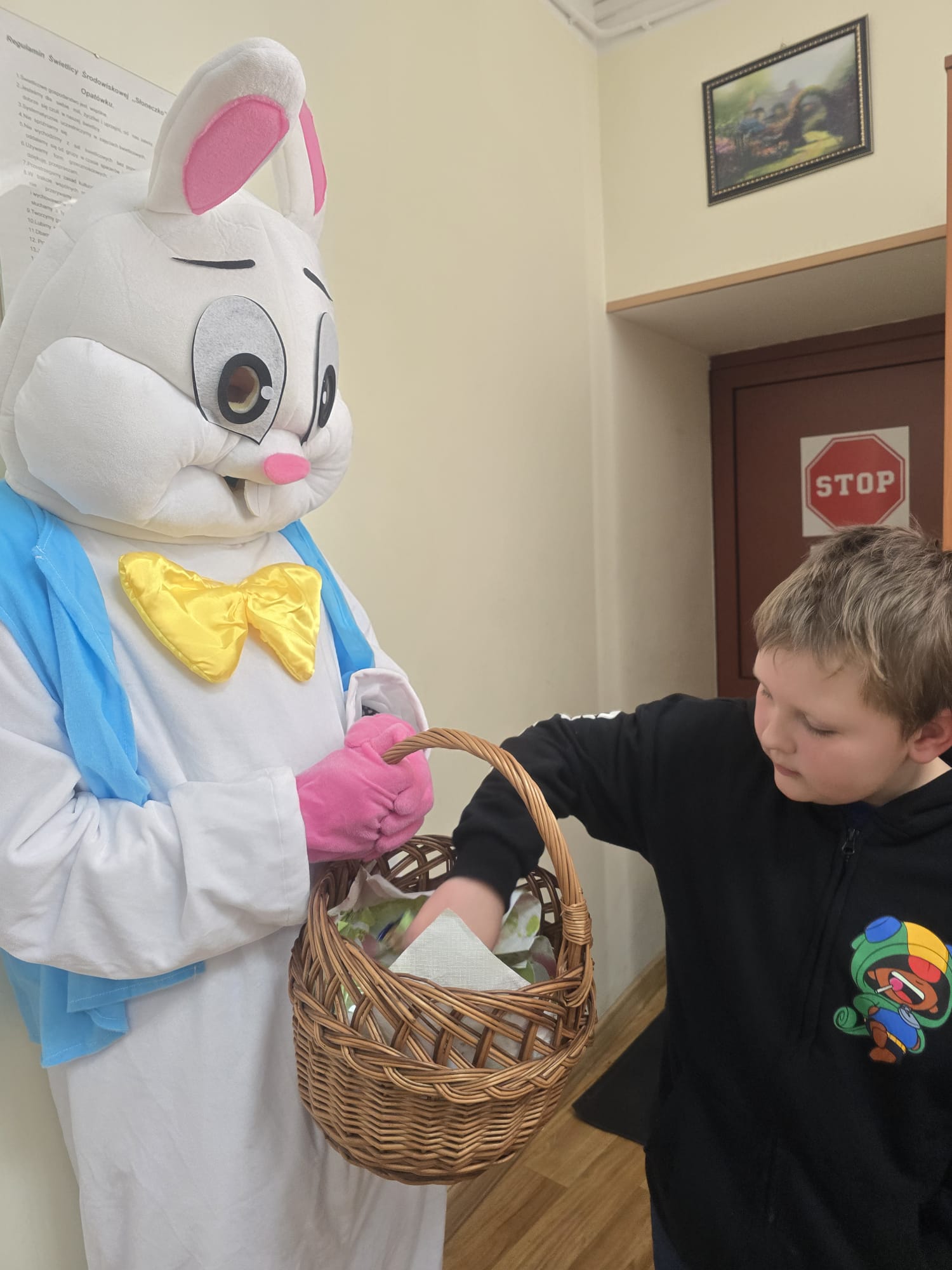 Błogosławieństwa pokarmów przygotowanych na stół wielkanocny dokonał proboszcz Parafii p.w. Najświętszego Serca Pana Jezusa Ks. Prałat Władysław Czamara. Wśród zaproszonych gości byli : Burmistrz Gminy Opatówek - Sebastian Wardęcki, Przewodnicząca Gminnej Komisji Rozwiązywania Problemów Alkoholowych w Opatówku – Halina Marszał-Sroczyńska, Kierownik Gminnego Ośrodka Pomocy Społecznej w Opatówku – Violetta Galant, Asystent Rodziny – Paulina Kasprzak. Niespodzianką dla dzieci było pojawienie się Zajączka Wielkanocnego z koszykiem słodyczy. Spotkanie przebiegło w radosnej atmosferze, były wspominane zwyczaje związane ze świętami Wielkiej Nocy oraz wzajemne życzenia spokojnych świąt i mokrego Dyngusa. Miłym akcentem spotkania było wspólne odśpiewanie „Ody Wielkanocnej” połączone z zagraniem Ody na trąbce przez jedną z wychowanek świetlicy. Dzieci w podziękowaniu za przybycie obdarowały gości okolicznościowymi kartkami.